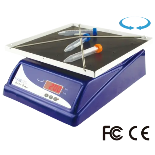 Standard orbital shaker with 30 × 30 cm platform and flat non-slip rubber mat.