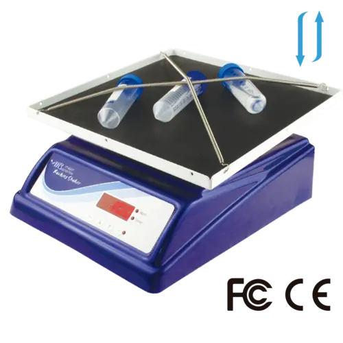 Compact rocking shaker, 30 × 30 cm platform with flat non-slip rubber mat.